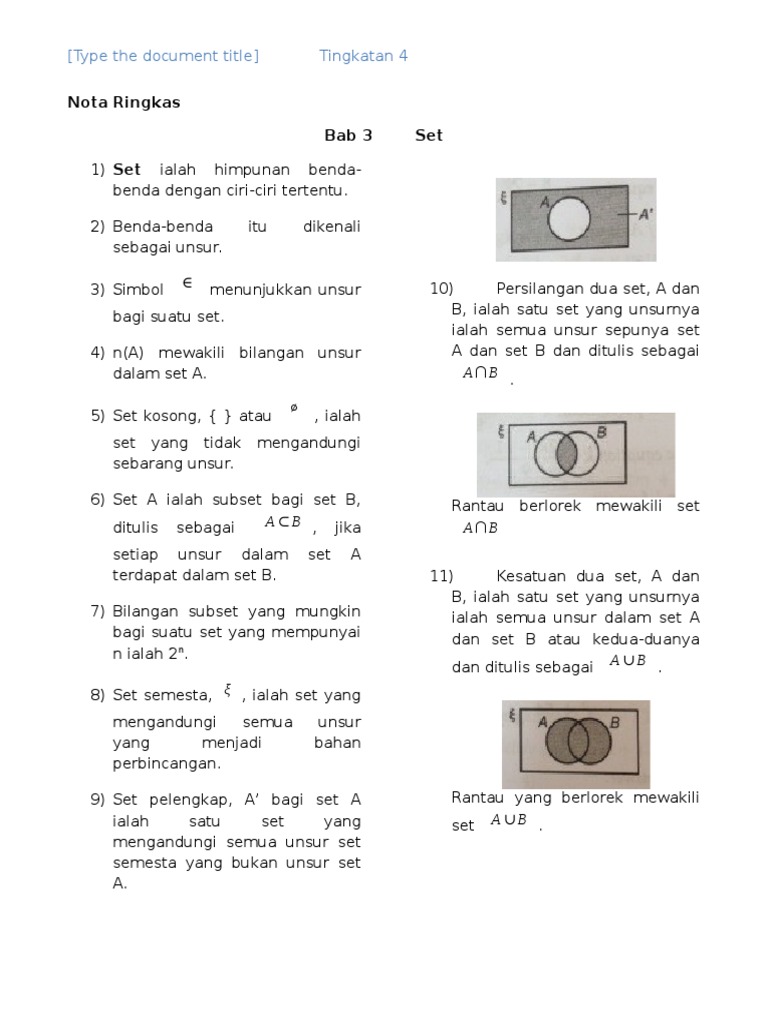 Nota Set Matematik Tingkatan 4